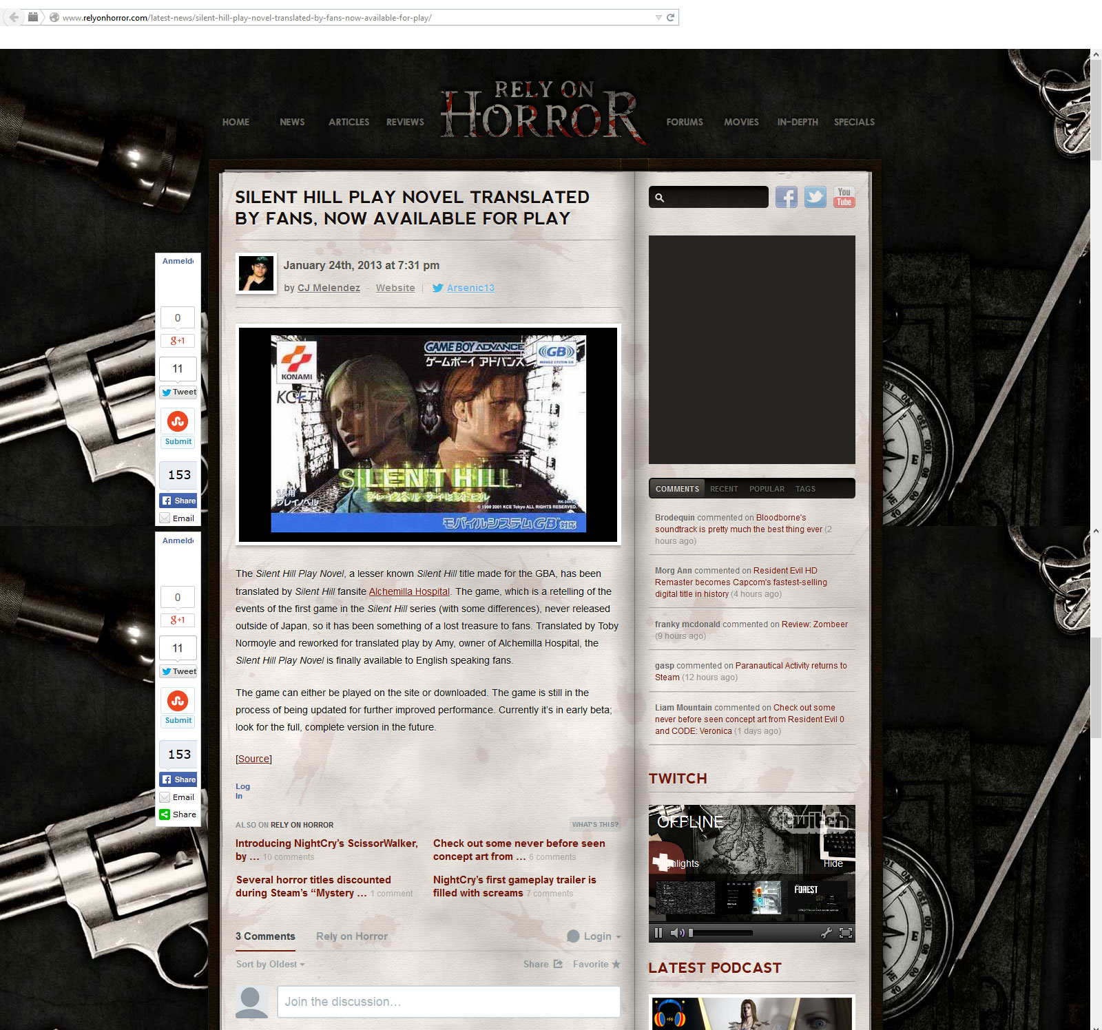2009: After letting amybalot.com expire because it was on a Windows server and I wanted more functionality, I moved it to circleofdestruction.net/silenthill and changed the layout more. Still trying to find all the stuff I had up before, I’ve had some hard drive crashes and am generally disorganized, but I am working on making things easier to navigate.
